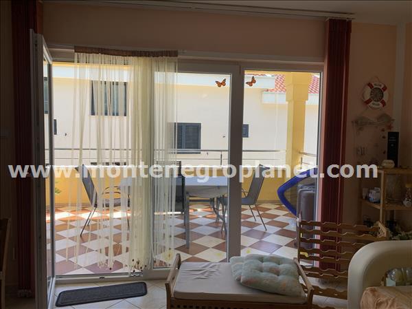 Two bedroomed apartment situated in a new building with lovely garden. Apartment consists from 2 bedrooms, living room, kitchen,dining room, bathrooom and nicely arranged terrace. Apartment is fully furnished. In front of the building is garden which is very well maintained and offers space for rest and relaxation. Spacious balcony (30m2) offers area for rest and relaxation