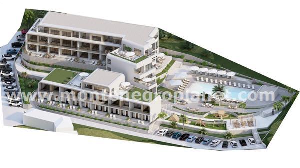 One bedroom apartment for sale in Tivat. The apartment size is 57,7m2 and it is only 100m away from the sea. It has a terrace with a lovely sea view. The building is a luxury residential complex, and each apartment is designed with attention to detail. The apartment offers all the comforts needed for a cozy and elegant life. The modern architecture of the complex is designed in such a way that every window offers a stunning sea view. Parking space for the apartment can be purchased separately for the price of 10 000 eur.